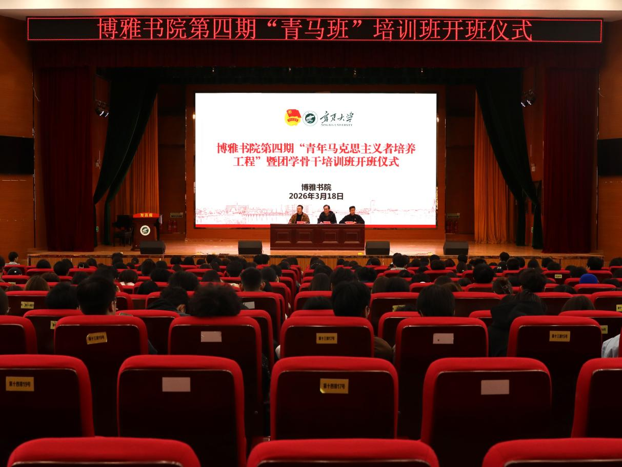 为深入学习贯彻习近平新时代中国特色社会主义思想和党的二十届四中全会精神,持续强化青年政治骨干培养,全面提升青年学员的思想政治素养与实践履职能力,引领广大青年成长为有理想、敢担当、能吃苦、肯奋斗的新时代好青年。3月18日,博雅书院第四期“青年马克思主义者培养工程”暨团学骨干培训班开班仪式在应理报告厅举行。博雅书院党委副书记贾随生、学生会秘书长徐向龙及全体参训学员参加开班仪式,仪式由团委老师黄彦天主持。