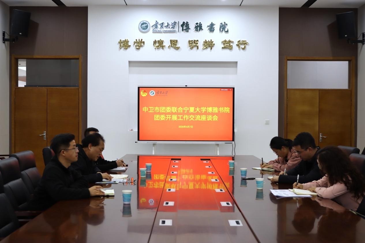 4月7日下午,中卫市团委与宁夏大学博雅书院团委在博雅书院110会议室联合开展工作交流座谈会。中卫市团委书记王洋、副书记张慧、综合管理部部长计婷,博雅书院党委副书记贾随生及书院专职团干部共同出席会议。