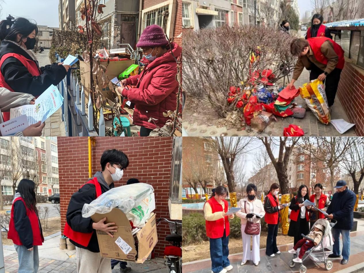 志愿者们身着“红马甲”,分组深入楼栋单元,对墙面、楼道及绿化带中的小广告和废弃杂物进行集中清理,消除卫生死角与安全隐患。同时,针对飞线充电、车辆乱停等现象开展劝导整改,规范停车秩序。此次活动不仅提升了社区人居环境质量,更以实际行动带动居民增强环保意识,营造了“人人爱护环境、共建美丽家园”的良好氛围,展现了博雅学子服务社区、奉献社会的青春风采。