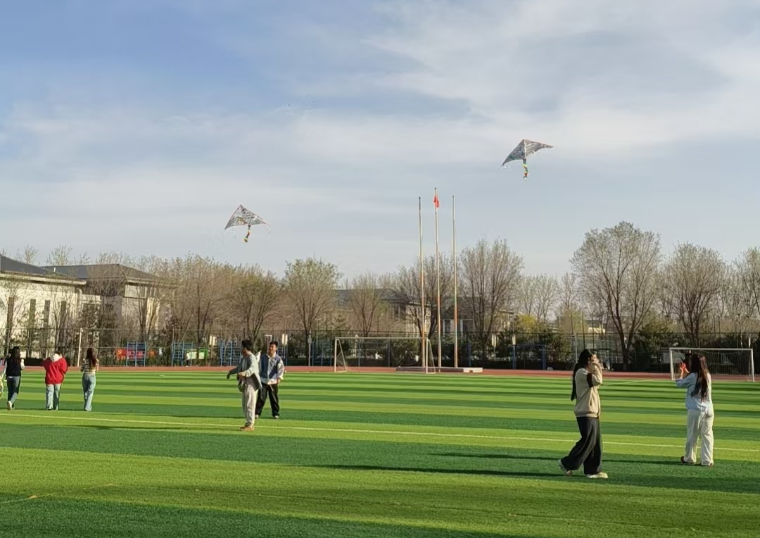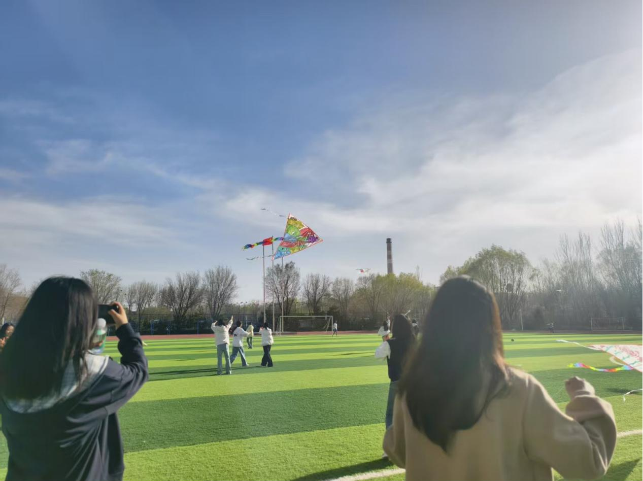 活动现场,工作人员备好空白风筝、颜料和画笔,同学们两人一组有序创作,发挥奇思妙想勾勒图案、点缀色彩,让素净的风筝变得鲜活亮眼。创作完成后,大家集体前往操场放风筝,亲手绘制的风筝迎着春风升空,在暖阳下自由翱翔,现场满是欢声笑语。